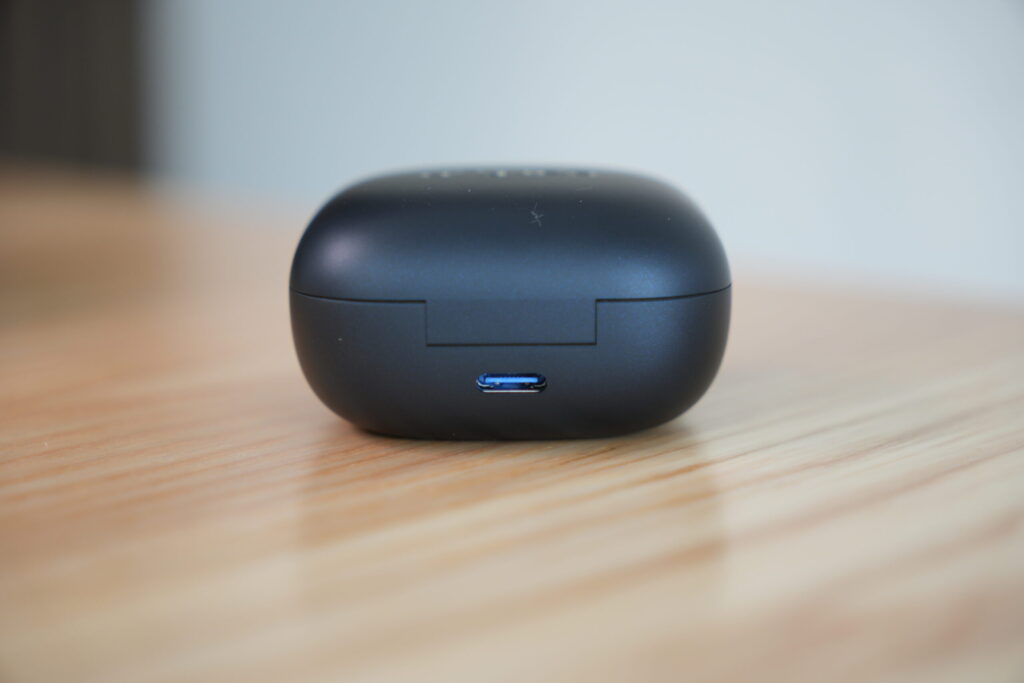 ケース後方にはタイプCポートがあり、ここにケーブルを挿すかワイヤレス充電器に置いて充電します。