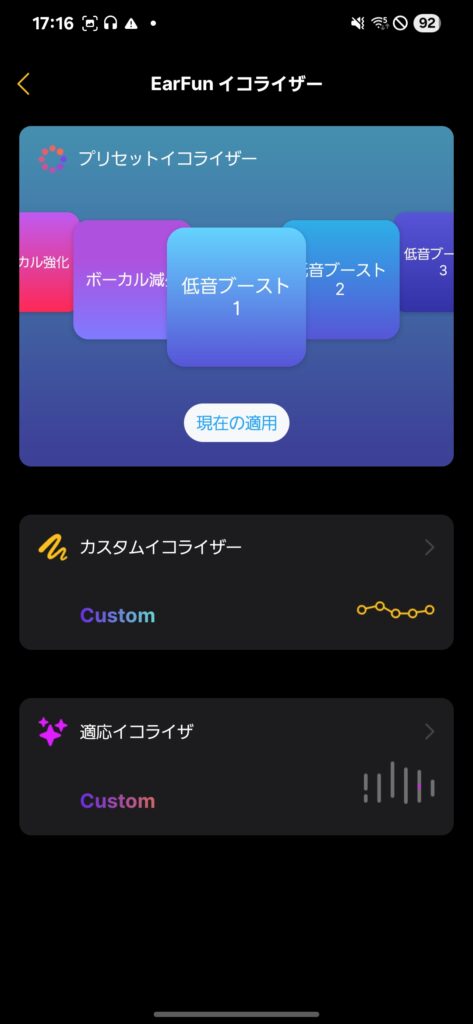僕は普段はカスタムイコライザ機能を使うことはないですが(難しいため)、今回は機能として自分の耳に合うような設定を簡単に行うことができたのでやってみました。