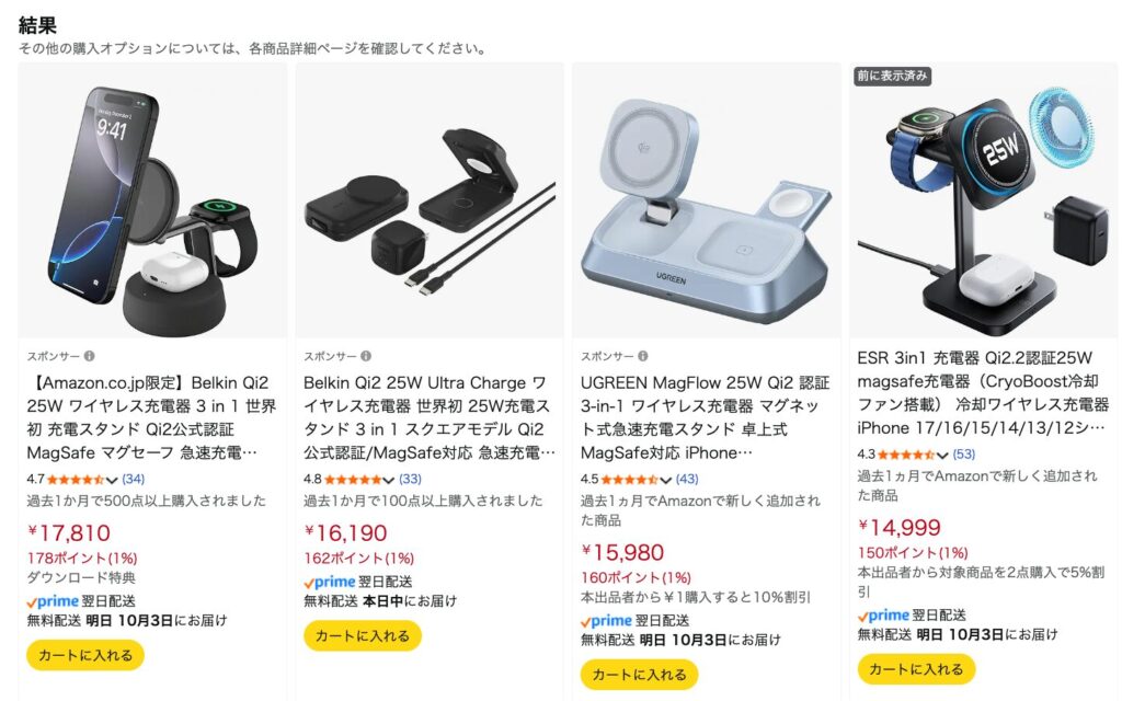 「熱くなりにくいMagSafe対応3-in-1」を探している方の参考になれば幸いです。