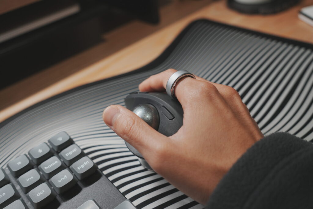 これは人によりけりかもしれませんが、リングに多少厚みがあるのでたとえばマウスを操作するときにカツッと当たるんですよね。