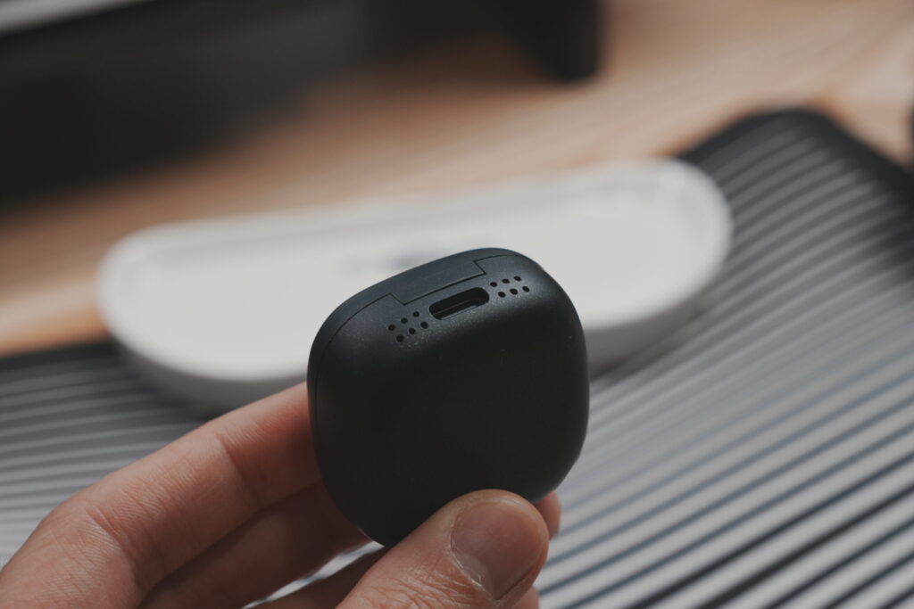ケースは非常にコンパクトで軽いです。充電はUSB-Cケーブルを接続して行えるので楽。