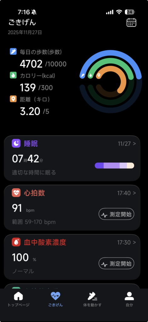 各種計測結果は専用アプリで確認が可能です。連携はスムーズで使いやすい一方でUIはもう少し作り込まれていると良かったなと思いました。詳しくは後ほど。