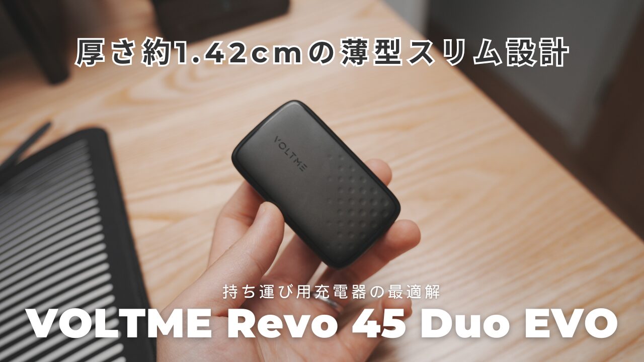 持ち運びにぴったりの超小型、軽量の45W出力充電器「VOLTME Revo 45 Duo EVO」を紹介しています。